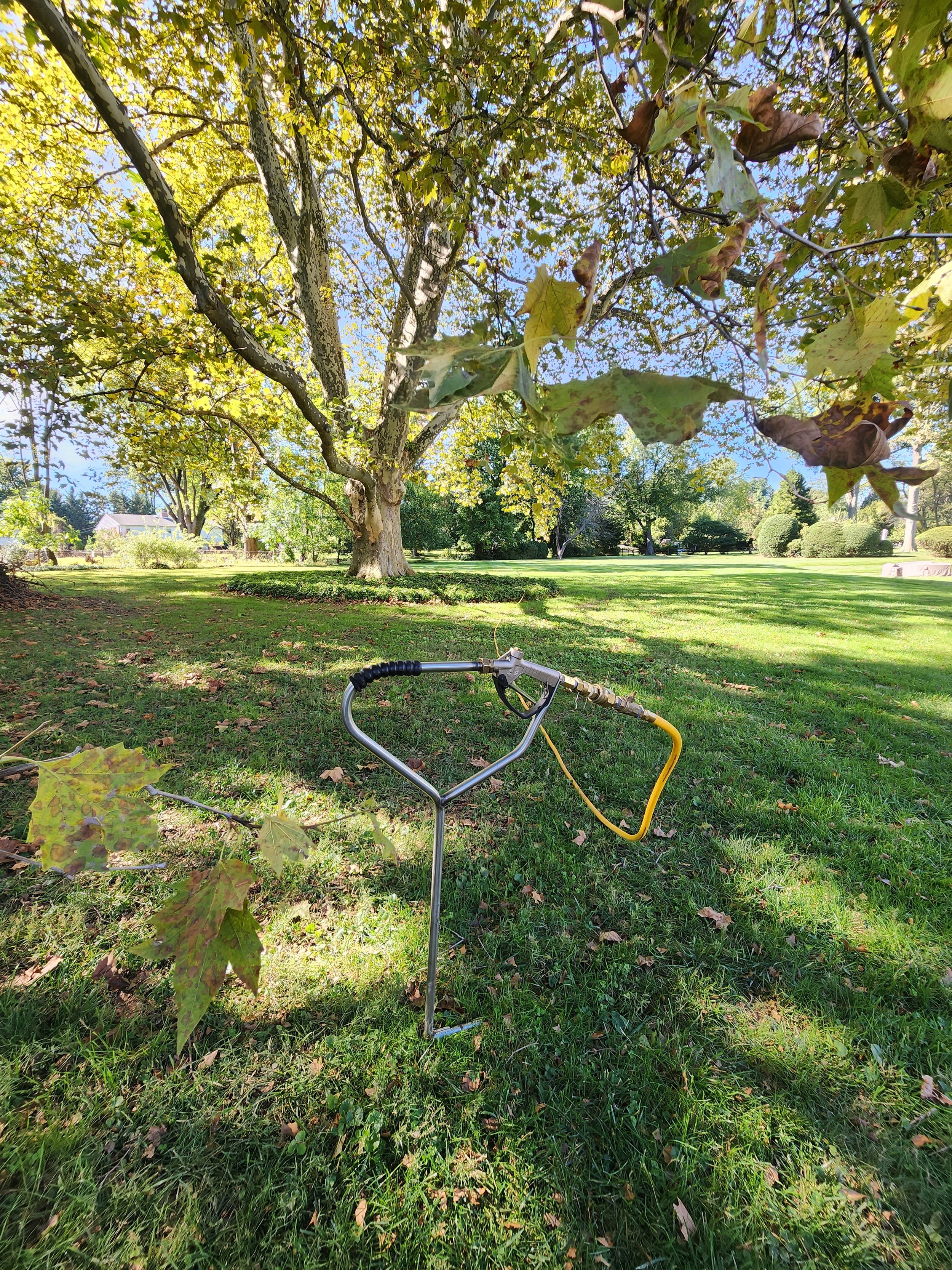 Sycamore also struggle with a number of fungal problems, some affecting the foliage and some affecting the trunk itself. Practiced Hands uses new, trunk-injection technology to deliver fungicide directly into the trunk of the tree. This involves drilling small holes around the base of the tree and using compressed air to propel the chemical through a needle directly into the drilled holes.