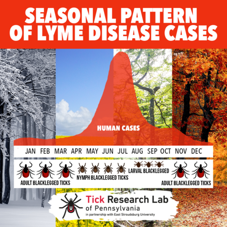 Ticks are most effectively controlled with cedarwood oil in the nymph and larval stages, which peak from May through September in the Philadelphia area. In a separate study, conducted on cattle ticks, it was discovered that treatment with cedarwood oil completely stops the ability of ticks to lay eggs - an event that occurs in the spring.